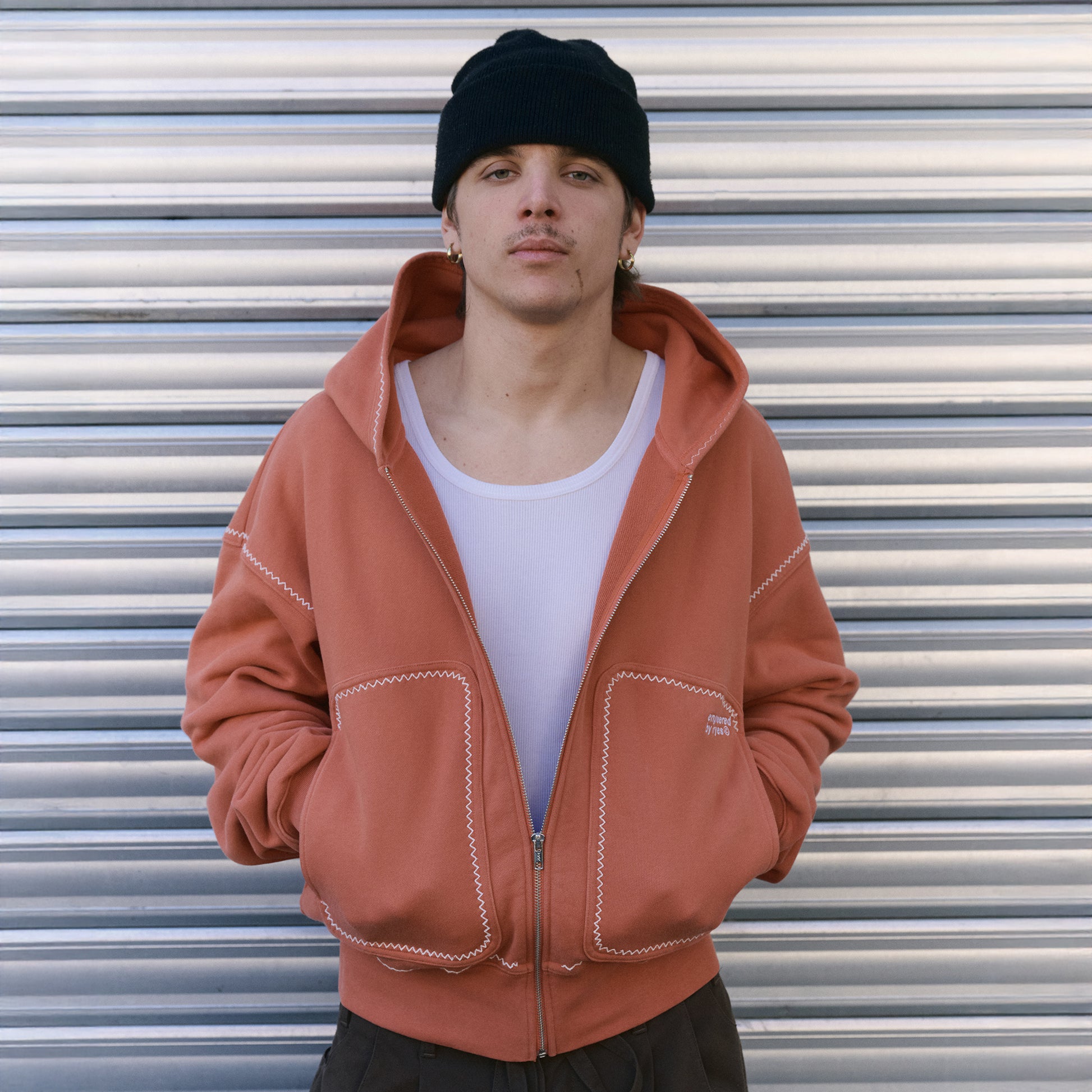 Arnaud mesure 185cm et porte le hoodie en taille L